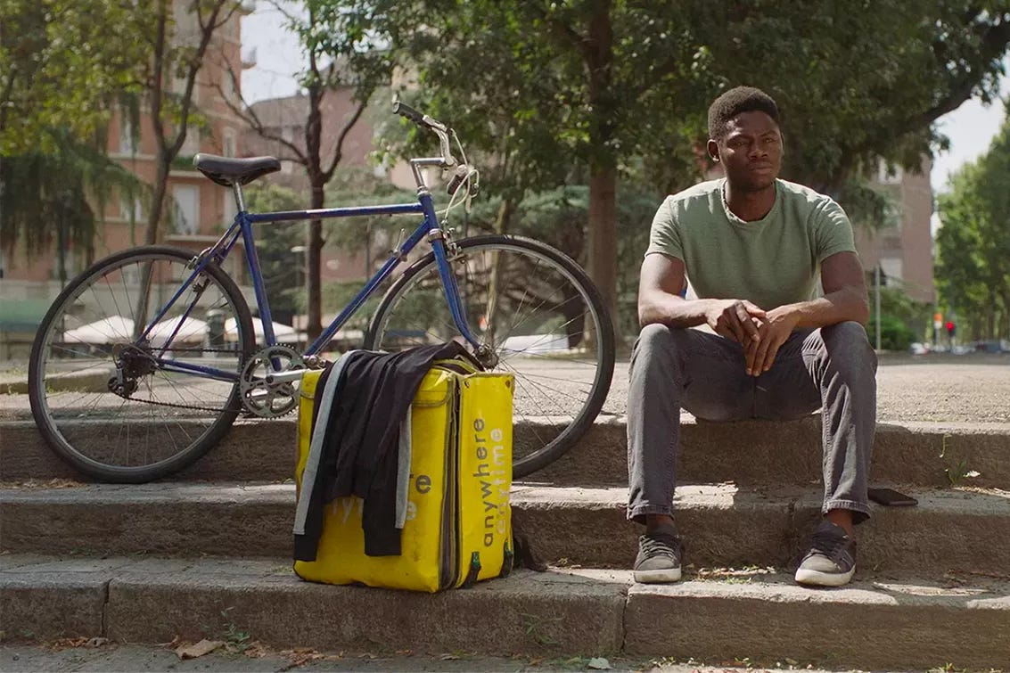 Realizado pelo iraniano Milad Tangshir, que vive em Itália desde 2011, é uma história que, na verdade, podia passar-se em qualquer outro lugar do mundo. Todos conhecemos, com mais ou menos detalhe (ou simplesmente porque vamos observando o mundo lá fora), a realidade dura dos que trabalham para aquelas plataformas de entrega de comida (ou de outras coisas, agora dá para tudo). Muitos andam de bicicleta por aí, a subir e a descer as ruas, para entregar refeições. A app é a que dá nome ao filme, e faz sentido: estas pessoas estão disponíveis em todo o lado e a qualquer momento, a troco de remunerações desumanas.